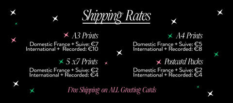 Are printed and packed with care from our UK studio or our studio in France and ship within 3–4 days.